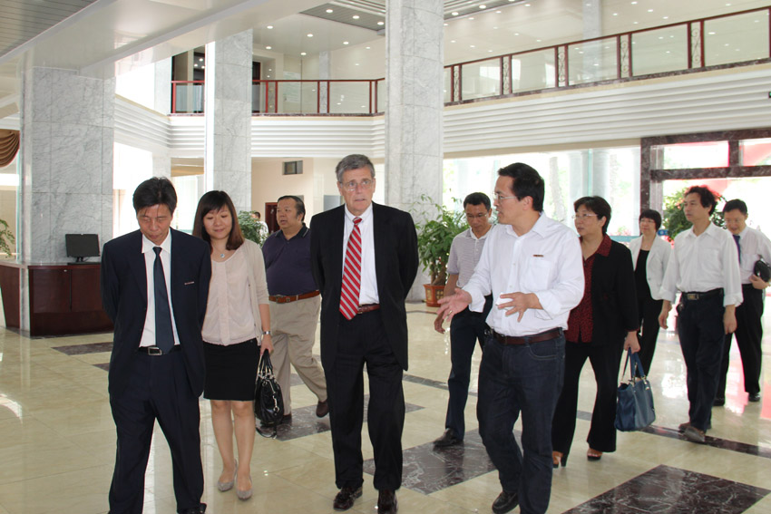 当天上午,双方召开校际合作具体事宜洽谈会。洽谈会上,吴秋明院长首先对美国宾夕法尼亚州东部大学校长一行的来访表示了热烈欢迎,回顾了两校之间友好合作办学的历史。随后,双方就合作MBA项目的招生简章制作、合作协议条款、语言关课程开设等具体事项深入交换了看法,并达成一致意见。会后在院领导的陪同下,大卫•布莱克校长一行参观了学院的图书馆、琴房、至诚培训学校、学生第一实验实训中心等地,深入了解学院办学情况。