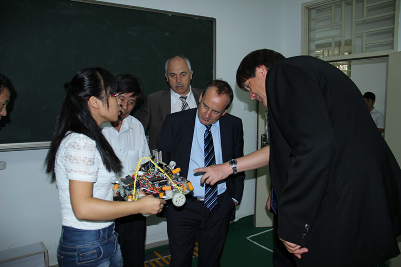 代表团一行首先在电气工程系会议室进行座谈。座谈会上,电气工程系主任郑崇苏副教授、机械工程系主任范扬波副教授分别介绍了所在系的专业、学生数、培养计划、师资力量等基本情况。双方就专业建设、人才培养等进行了简单交流。座谈会后,代表团一行还参观了电气工程系机器人创新实践室,观摩了即将赴安徽参加中国机器人大赛暨RoboCup机器人公开赛的机器人作品演示。代表团高度赞扬了学生创新作品,并对学院办学成果给予了充分肯定。