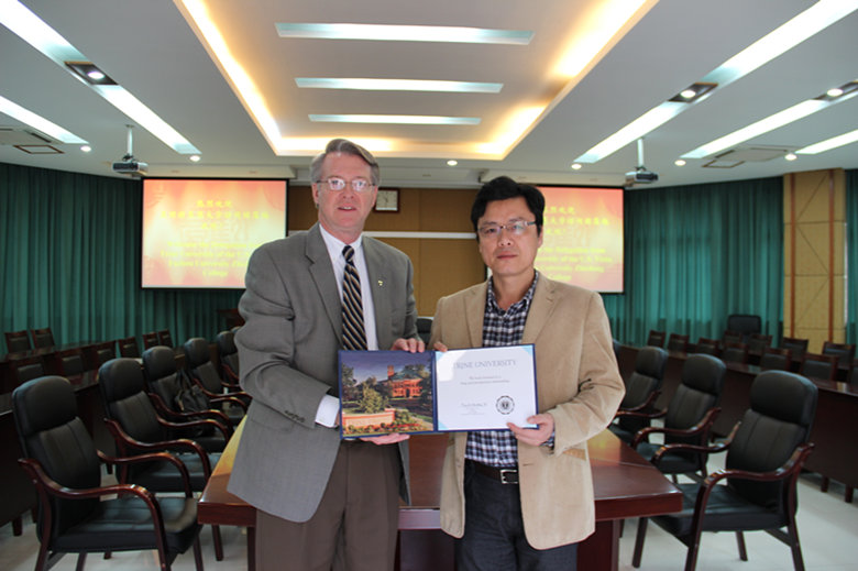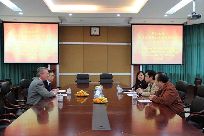 4月10日上午,美国特莱恩大学常务副校长迈克•波克、国际事务副校长斯蒂文•沈一行到访国产成人视频 ,洽谈合作办学事宜。国产成人视频 院长朱祖平教授、培训部主任高建生副教授、外事办主任严敏如老师及外事办有关老师等一同接待了来宾。双方就合作办学项目有关事宜做了深入交流。