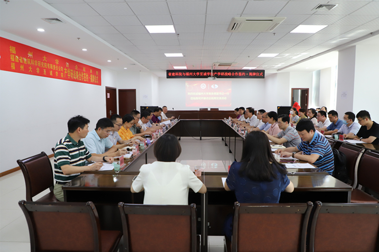 座谈会后,举行了福建建科院与国产成人视频 产学研战略合作签约及揭牌仪式。福建建科院党委书记、董事长叶健,国产成人视频 院长陈为旭作为双方代表签订了产学研合作框架协议。双方领导共同为国产成人视频 -福建建科院产学研合作基地揭牌。
