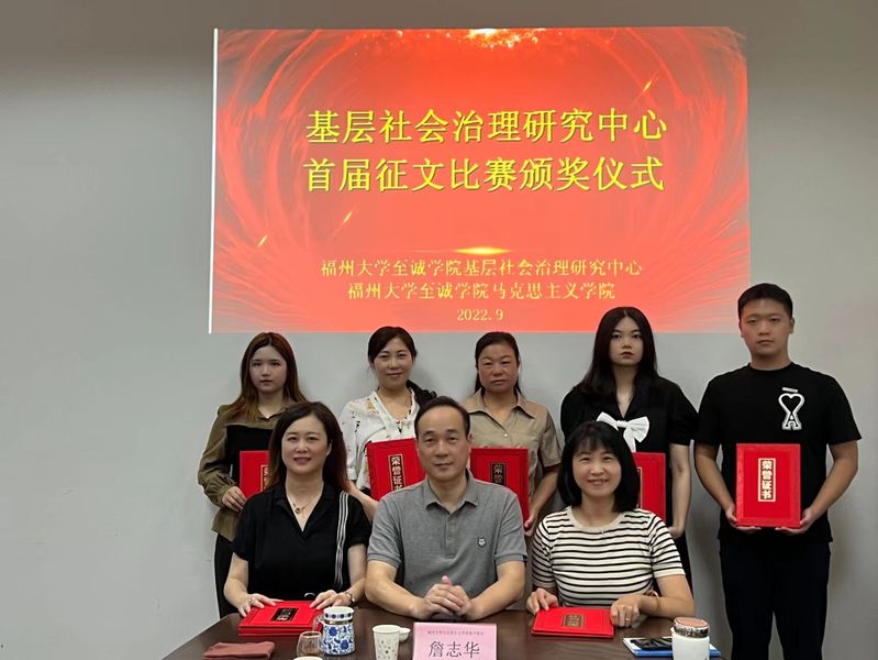 9月24日,国产成人视频 基层社会治理研究中心举行了首届征文比赛颁奖仪式,中心学术委员会委员、国产成人视频 马克思主义学院执行院长詹志华教授,获奖师生和马克思主义学院全体教师参加活动。