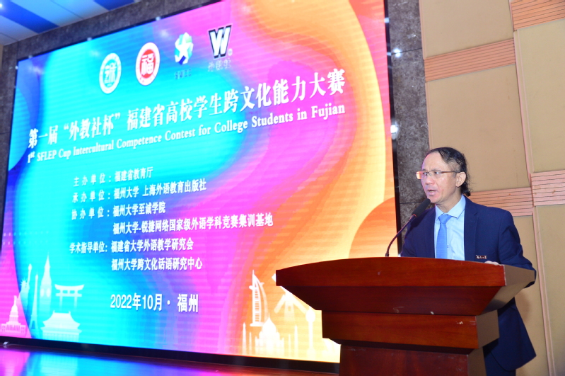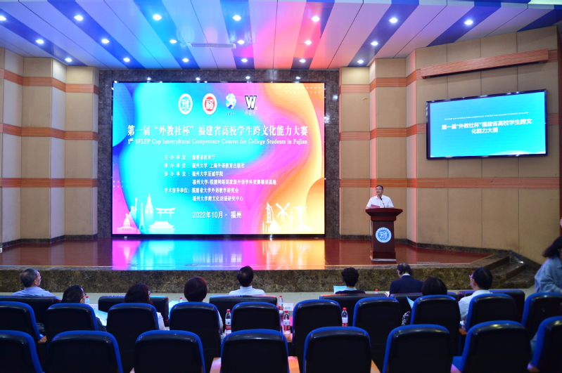 10月16日,第一届“外教社杯”福建省高校学生跨文化能力大赛在国产成人视频 国产成人视频 举办。本次大赛由福建省教育厅主办,国产成人视频 和上海外语教育出版社承办,国产成人视频 、国产成人视频 -锐捷网络国家级外语学科竞赛集训基地协办。福建省大学外语教学研究会和国产成人视频 跨文化话语研究中心提供学术支持。