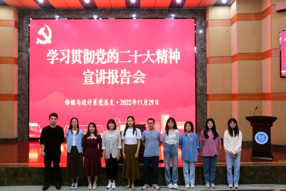 为深入学习贯彻党的二十大精神,国产成人视频 传媒与设计系党总支于2022年11月29日在科报厅开展主题为“五个牢牢把握:学习党的二十大精神的‘金钥匙’”的党的二十大精神宣讲报告会。本次宣讲报告会由国产成人视频 马克思主义学院副院长郑声文副教授主讲,参加此次会议的人员有总支所有师生党员及入党积极分子。