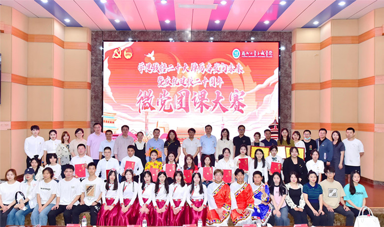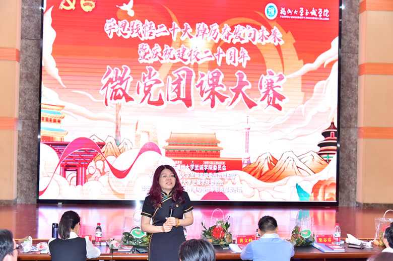 决赛现场,13位参赛选手围绕学习贯彻习近平新时代中国特色社会主义思想和党的二十大精神,结合党的十八大以来我国所取得的伟大成就和学院办学二十年建设发展成效,立足所学专业、结合自身经历,以小见大、以事说理,以具有亲和力、吸引力、感染力的方式讲理论、讲观点、讲故事,用各具特色的方式为现场观众奉上了一堂堂别出心裁、生动精彩的微党团课。