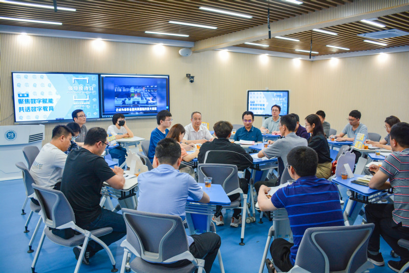 为深入开展学习贯彻习近平新时代中国特色社会主义思想主题教育,大兴调查研究之风,结合省委关于“深学争优、敢为争先、实干争效”的部署要求,国产成人视频 举办了“领导接待日”系列活动。5月19日下午,2023年“领导接待日”首场活动在子兴楼402智慧教室举行。院党委常务副书记何希耕、副院长张栋与来自各党总支、各职能部处、各系、各教研室的20余名师生代表就“聚焦数字赋能、共话数字教育”话题以“圆桌派”的形式展开交流。活动由张栋副院长主持。