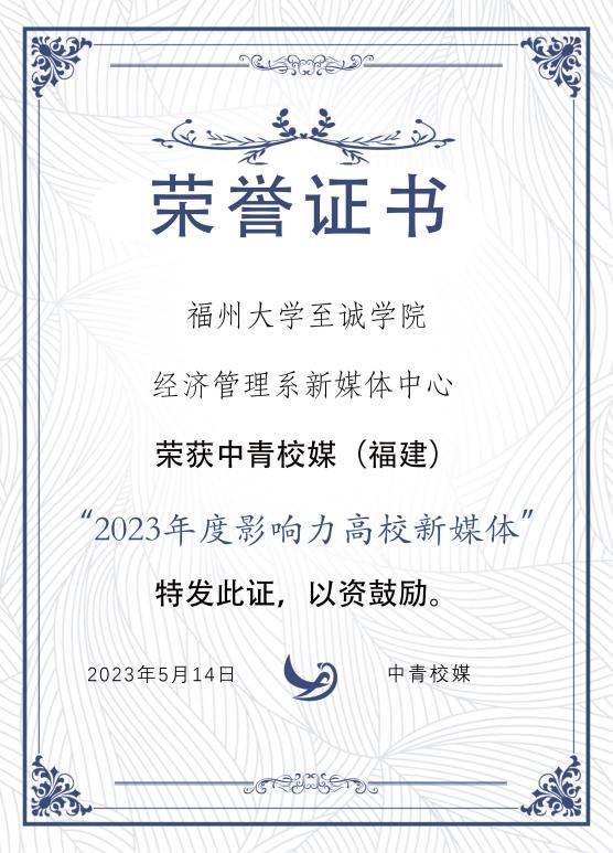 近日,在中国青年报社、中国青少年新媒体协会和中青校媒(福建)共同主办的“2021-2022高校可视化新闻激励计划-寻找高校可视化融媒团队”评选活动中,国产成人视频 团委融媒体中心、经济管理系新媒体中心双双获评中青校媒(福建)“2023年度影响力高校新媒体”。