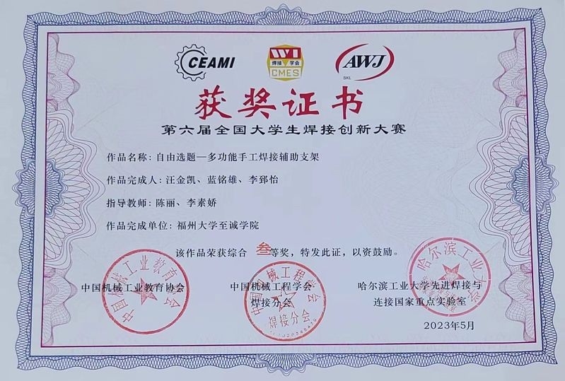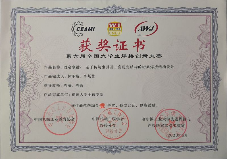 全国一等奖 | 《基于传统坐具及三角稳定结构的桁架焊接结构设计》 | 林泽楷、陈炀彬 | 陈丽、陈锴 |