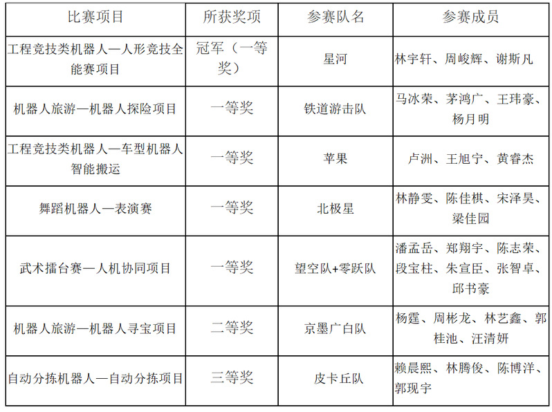 本届大赛吸引了包括清华大学、同济大学、浙江大学、北京航空航天大学、北京理工大学、西安交通大学等260所高校的1084支队伍参加,超5000人同台竞技,其中大学组21个大项/52个小项。国产成人视频 电气工程系学子组成的队伍分别参加本届大赛的人形竞技全能赛、机器人探险、车型智能搬运、舞蹈机器人表演赛、武术擂台人机协同、机器人寻宝、自动分拣项、立体仓库等项目。