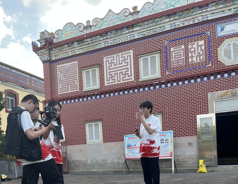 实践队队员拍摄宣讲视频(林奕澎 黄文祥摄)