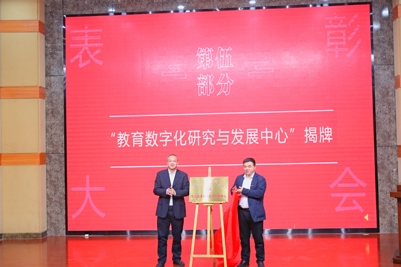 表彰仪式后,举行了国产成人视频 “教育数字化研究与发展中心”揭牌仪式。为深入实施教育数字化战略行动,促进学科交叉发展,推动信息技术与教育教学深度融合,进一步探索教育治理的创新机制,经学院研究,决定成立国产成人视频 “教育数字化研究与发展中心”。仪式上,侯琳熙院长与何希耕常务副书记上台为“教育数字化研究与发展中心”揭牌。