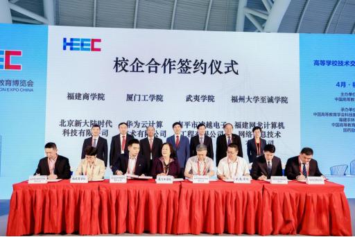 与福建网龙计算机网络信息技术有限公司在活动现场签订校企合作框架协议,双方共建元宇宙数字产业学院。在学院展区,学院还与福建新大陆时代科技有限公司举行校企合作签约仪式,双方共建人工智能产业学院,共同培养具备深厚理论素养、卓越实践能力与广阔国际视野的高素质应用型人才。