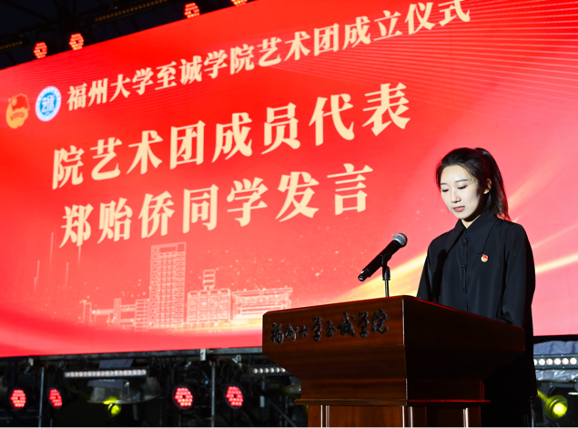 仪式在合唱《少年》以及宣传片《艺路同行》中拉开帷幕。郑贻侨同学代表院艺术团全体成员表示,她们将以最大的热情和努力,为校园文化的繁荣发展贡献自己的力量。