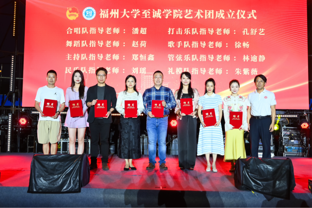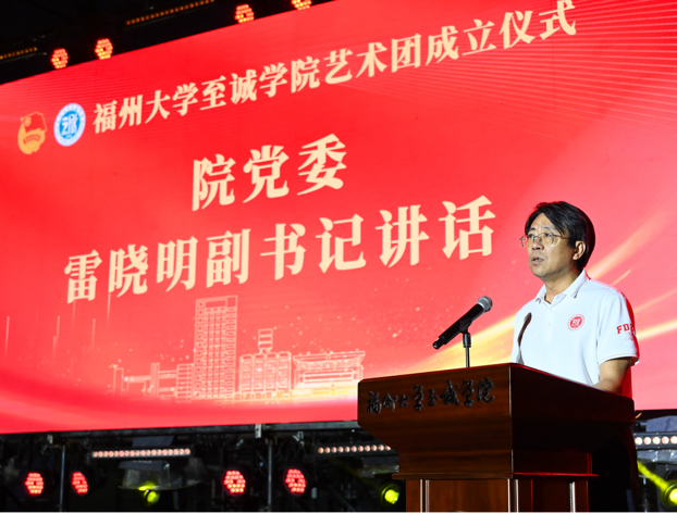5月29日,国产成人视频 艺术团成立仪式在健身广场隆重举行。校团委副书记张茜茜、院党委副书记雷晓明,院团委老师、院艺术团指导老师及学生代表出席活动。