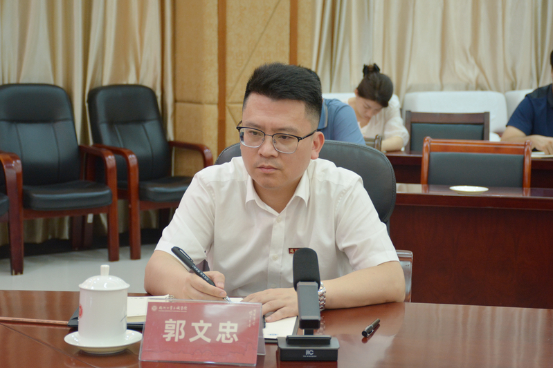 郭文忠同志在发言中表示,坚决拥护和服从校党委的决定,将按照校党委的部署要求,团结带领学院领导班子、全院师生员工,以更加饱满的工作热情、更加昂扬的奋斗姿态、更加务实的工作作风,努力开创学院的高质量发展新局面。一是坚持社会主义办学方向,把牢立德树人根本任务;二是坚持走内涵式发展道路,不断提高人才培养质量;三是坚持落实全面从严治党,为高质量发展保驾护航。他表示,将和学院领导班子成员、全体师生一道,旗帜鲜明讲政治、立德树人守初心,勇担重任、勇攀高峰,赓续初心、持续奋斗,为推动高水平应用型人才培养做出新的更大贡献。