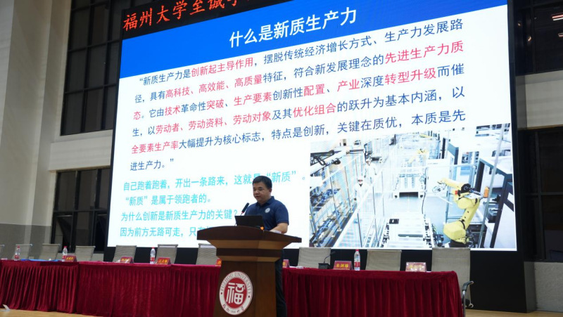 侯琳熙院长以“迎接新质生产力,勇于创新攀高峰”为题,带领同学们深入学习习近平总书记关于新质生产力的一系列重要论述,了解新质生产力的内涵、相关背景及发展过程。他为同学们详细介绍了四次科技革命的发展历程,并表示科技的不断发展及历史的前进是新质生产力发展的重要因素。他结合当今时代背景,向同学们重点讲述了新质生产力与建设强国目标的重要性。课上,侯琳熙院长还介绍了新质生产力在制造业、零售业、医疗保健行业等七大领域的应用及未来发展前景,鼓励同学们要积极做好大学职业生涯规划,努力学习知识技能,以坚定的信念投身科技事业,为强国事业贡献出自己的力量。