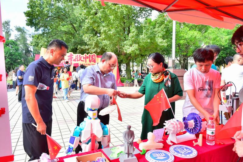 为庆祝中华人民共和国成立75周年,9月29日下午,由国产成人视频 学生工作部(处)主办,第四党总支、第五党总支、传媒与设计系党总支承办的“青春至诚,爱我中华”迎国庆主题活动在图书馆前广场举办。