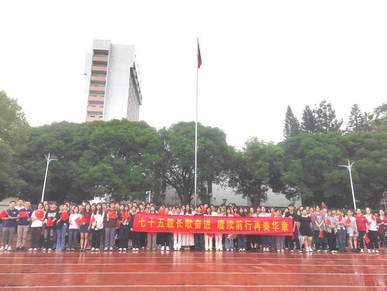 在怡山校区田径场举行升国旗仪式,庆祝中华人民共和国成立75周年。院党委副书记林文麟,全体政工干部及学生代表参加升旗仪式。