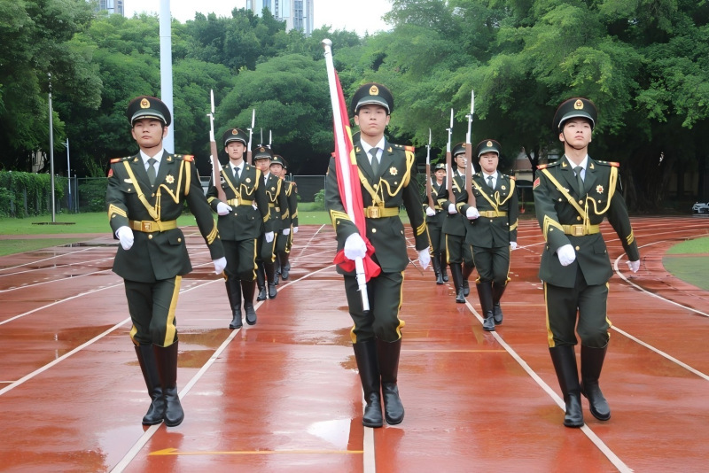 上午7时,升旗仪式正式开始。院国旗护卫队的同学们整齐列队,昂首挺胸,迈着铿锵有力的步伐,护卫国旗走向升旗台。随着雄壮的《义勇军进行曲》响彻云霄,鲜艳的五星红旗冉冉升起、迎风招展,在场全体师生肃然起敬、注目国旗、高唱国歌、激情澎湃。