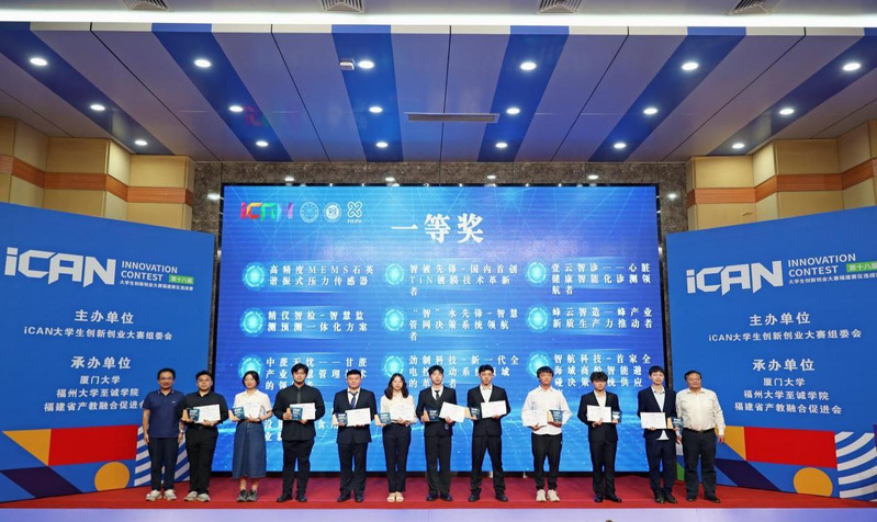 近日,第十八届iCAN 大学生创新创业大赛福建赛区选拔赛决赛成功举办。大赛吸引了厦门大学、福建农林大学等30 所高校的182 支队伍参赛,参赛队伍创历史新高。国产成人视频 荣获大赛优秀组织奖,4 支参赛队伍脱颖而出,荣获创新创业类项目一等奖3 项、二等奖 1 项,获一等奖数量居福建省高校榜首。获大赛一等奖的队伍,成功晋级全国总决赛。