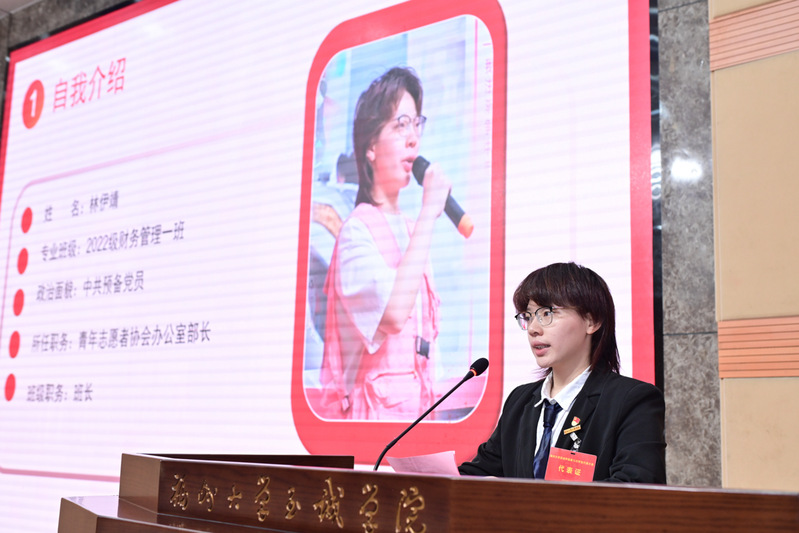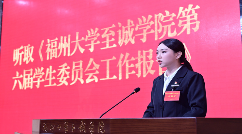 刘茉菲同学代表院第六届学生委员会向大会作题为“奋进不辍守初衷,勠力同心筑未来”的工作报告,总结回顾第六次学生代表大会以来学生会工作,明确下一阶段国产成人视频 学生会的工作思路和发展目标。