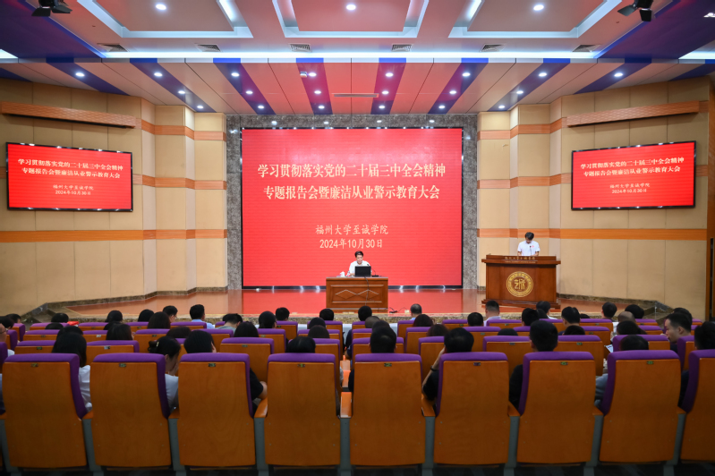 为深入学习贯彻党的二十届三中全会精神,教育引导学院党员领导干部进一步全面深化改革的政治自觉、思想自觉、行动自觉,坚持用改革精神和严的标准管党治党,不断健全全面从严治党体系,为学院进一步全面深化改革提供有力保障。10月30日下午,国产成人视频 在科报厅召开学习贯彻落实党的二十届三中全会精神专题报告会暨廉洁从业警示教育大会,学院翁德顺纪委书记和国产成人视频 马克思主义学院舒展教授分别在大会上分别作辅导报告。学院领导及各级中层干部共计94人参加,大会由学院雷晓明副院长主持。