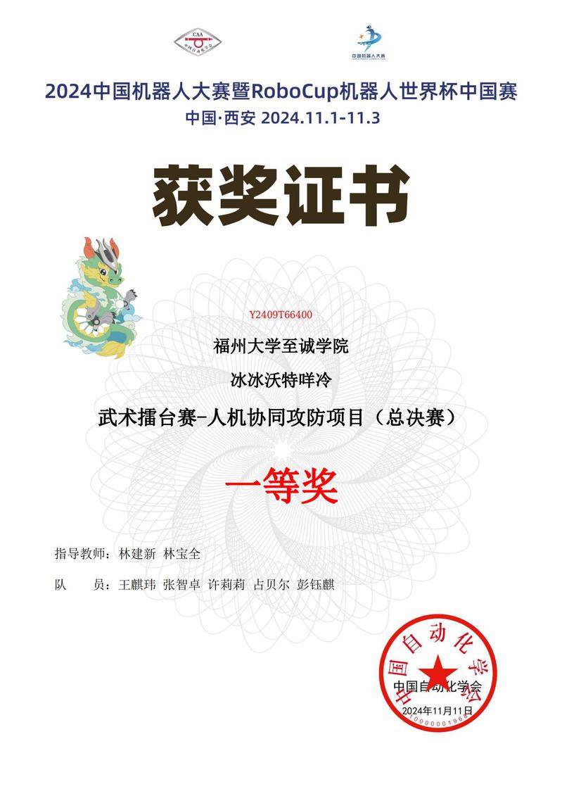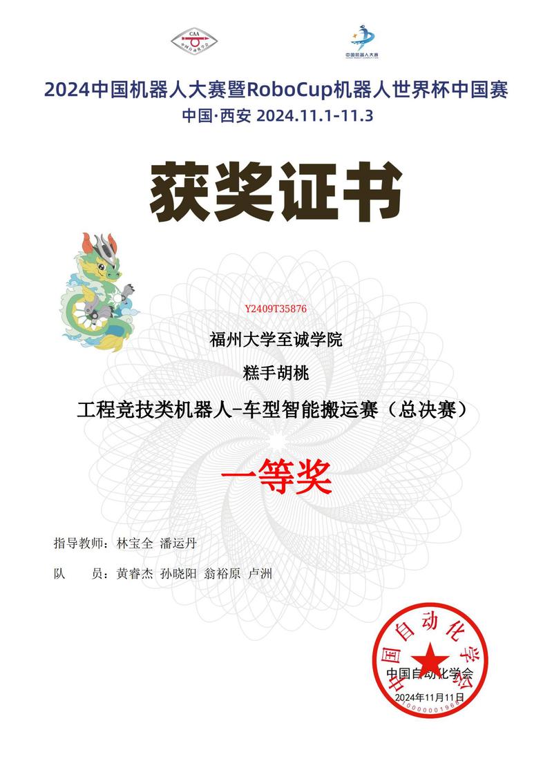 日前,2024中国机器人大赛暨RoboCup机器人世界杯中国赛在陕西西安会展中心圆满落幕。福州大学国产成人视频 电气工程系学子组队参加比赛,取得2项一等奖、3项二等奖、5项三等奖的佳绩。