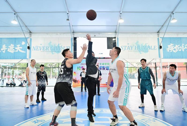 当天下午,在国产成人视频 至善篮球馆还举行了校友-教工篮球友谊赛。