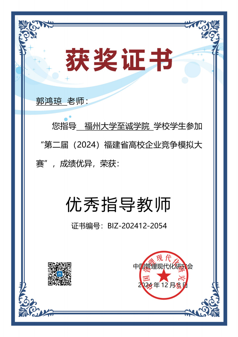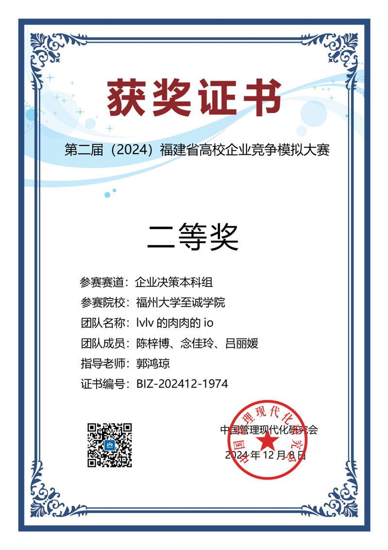 日前,第二届(2024)福建省高校企业竞争模拟大赛获奖名单正式公布。由国产成人视频 ERP沙盘协会同学组成的10支代表队,经过激烈角逐,荣获企业运营本科组一等奖1项、三等奖3项,企业决策本科组二等奖1项、三等奖1项的佳绩。带队老师郭鸿琼老师荣获“优秀指导老师”称号。