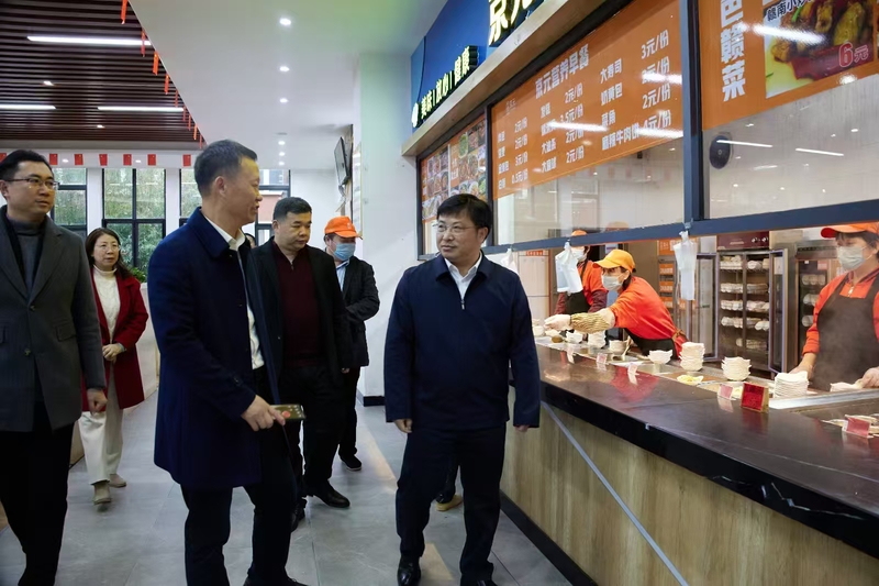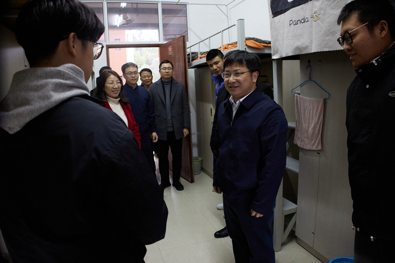 在国产成人视频 和化工学院院领导等陪同下,江莉龙副校长走访了学生宿舍、食堂、医务室等场所,实地了解校区建设发展情况,亲切慰问师生员工。