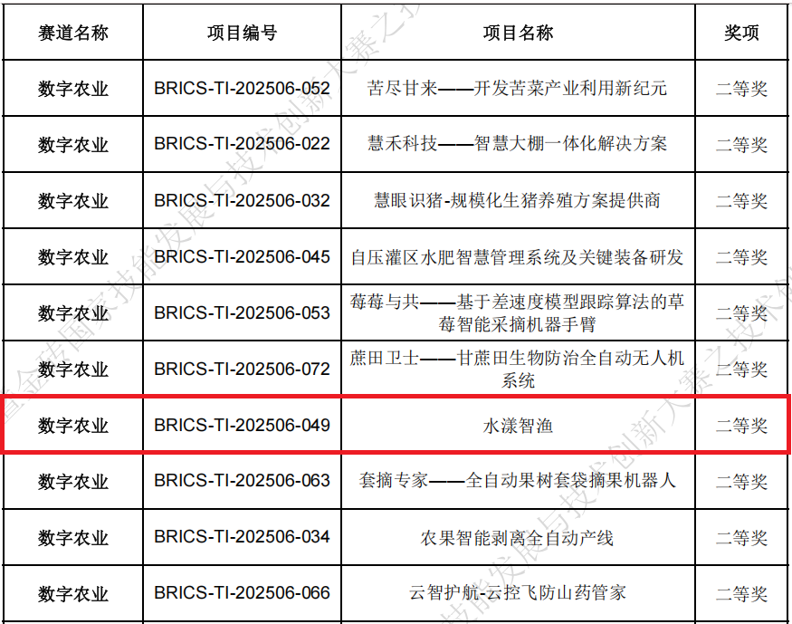 近日,2025“一带一路”暨金砖国家技能发展与技术创新大赛之技术创新赛国内总决赛在厦门市金砖未来技能发展与技术创新研究院落下帷幕。本届竞赛经初赛选拔和专家评审,最终300多个优质项目脱颖而出,进入国内决赛角逐。国产成人视频 材料工程系《水漾智渔》项目(项目成员:高炳财、林幸隆、洪茂林、谢宜敬,指导教师:陈艳云)晋级国内决赛并荣获银奖暨二等奖,国产成人视频 获得优秀组织奖。