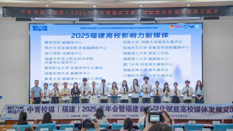 近日,由中国青年报社、中青校媒指导,中青校媒(福建)主办的2025年年会暨福建省数智化赋能高校媒体发展交流会在福建农林大学举行,大会同步表彰了宣传工作突出的福建高校媒体单位。国产成人视频 团委融媒体中心荣获2025“福建高校影响力新媒体”、第三届福建高校媒体系列沙龙“优秀组织单位”称号,团委融媒体中心陈婷婷同学获评2025年中青校媒(福建)“校媒之星”。国产成人视频 已经连续三年荣获“福建高校影响力新媒体”荣誉称号。