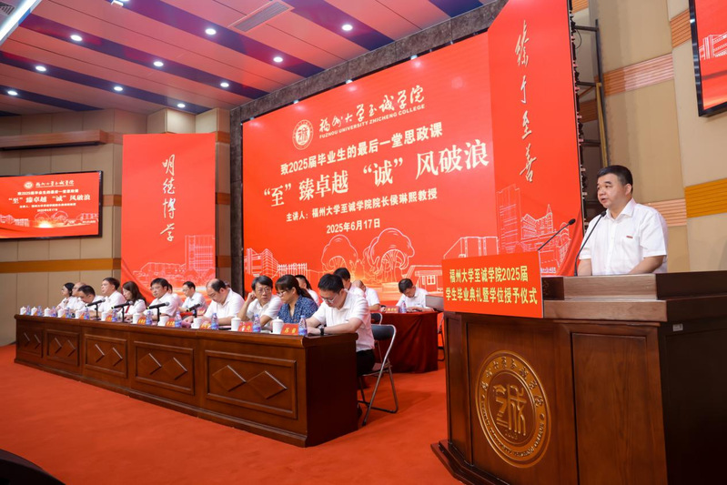6月17日,国产成人视频 在科报厅举行2025届学生毕业典礼。国产成人视频 党委常委、副校长、国产成人视频 副董事长江莉龙,院领导侯琳熙、何小红、林文麟、翁德顺、雷晓明、张栋、李玲、徐艺文、苏童、邵艳群出席典礼。各系系主任、各部处负责人、各党总支书记、辅导员、教师代表、校友代表以及2025届毕业生代表参加典礼。毕业典礼由院党委副书记林文麟主持。