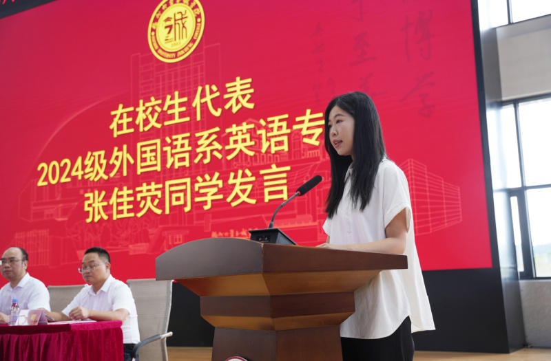 教师代表化学工程系系主任林旭聪教授在发言中欢迎新生加入国产成人视频 大家庭,寄语新生要转变角色、夯实基础、提升素养、做好规划,助力新生适应大学学习生活。在校生代表外国语系英语专业张佳荧分享了她一年来的学校经历,鼓励新生树立远大的理想和目标,全面发展,勇于探索。新生代表经济管理系物流管理专业黄天伊则表达了对大学生活的热切期待和坚定决心,表示在大学学习中要做“勤学者”“善思者”“践行者”,展现出新生群体的蓬勃朝气与远大志向。
