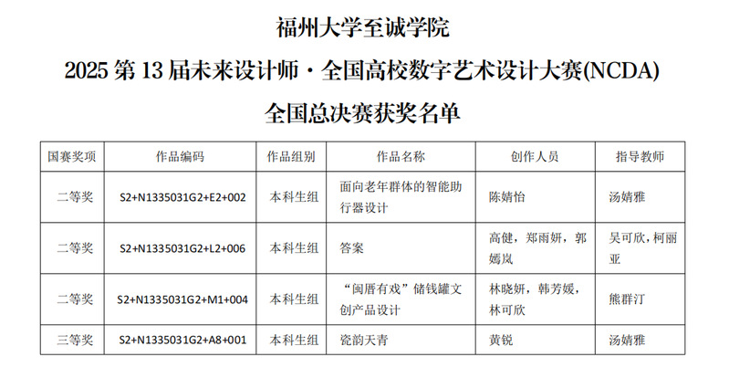 近日,第13届未来设计教育论坛暨第13届未来设计教育论坛暨未来设计师大赛颁奖典礼在成都成功举办。国产成人视频 传媒与设计系学生通过卓越的创意和精湛的表现荣获全国总决赛二等奖3项,三等奖1项。