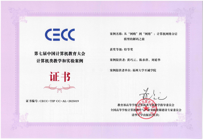 近日,以“新智能·新范式·新时代”为主题的第七届中国计算机教育大会(CECC)在厦门国际会议中心召开。在大会备受关注的教学和实验案例评选中,国产成人视频 计算机工程系黄巧云、陈亦萍、刘延华等教师设计的教学案例从众多参赛作品中脱颖而出,荣获特等奖,省内参赛案例中排名第一。