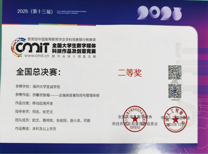 此次获奖不仅是对信息工程系学子创新能力与实践水平的肯定,更是学院以赛促教、以赛促学人才培养模式的生动体现。未来,国产成人视频 将继续鼓励学生在数字媒体、智能科技等领域深耕,推动学科交叉融合,培养更多兼具技术素养与创新思维的复合型人才,为行业发展与社会进步贡献力量。