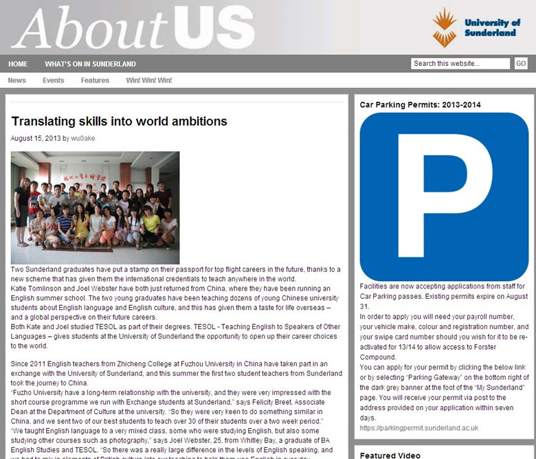 英国桑德兰大学网站图文报道与国产成人视频 合办的暑期英语夏令营活动