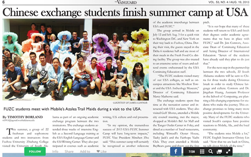 美国莫比尔市当地报纸《Vanguard》图文报道国产成人视频 暑期赴美文化研习团活动
