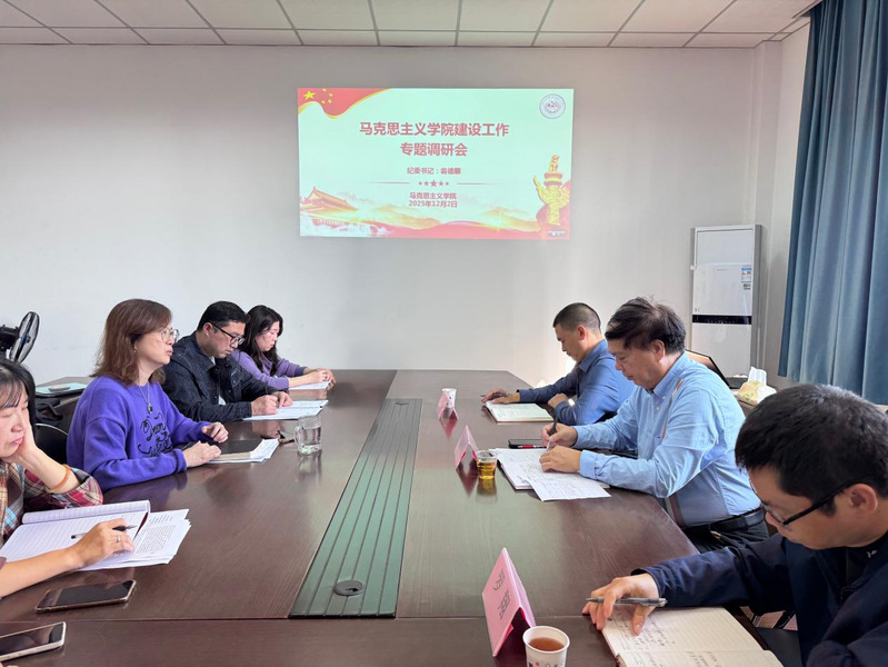 为深入学习贯彻党的二十届四中全会精神,扎实推进马克思主义学院高质量发展,12月2日下午,学院纪委书记翁德顺携人力资源部、发展规划处、教务处相关负责人到马克思主义学院调研指导。马克思主义学院院长、副院长、党支部副书记、各教研室主任及教师代表参加了座谈交流。座谈会上,马克思主义学院负责人就学院在学科建设、教学科研、师资队伍建设与运行机制等方面取得的进展、成效以及存在的问题作了全面汇报。纪委书记翁德顺在听取汇报后,对马克思主义学院近年来各项工作取得的成绩给予了充分肯定。他强调,马克思主义学院是意识形态领域发挥引领和指导作用的前沿阵地,是承担思政理论研究和教学实践的主要部门,更是开展思想政治教育的主渠道、主阵地,是为社会传播先进思想文化的教学科研机构,必须始终坚持“马院姓马、在马言马”的鲜明导向,扎实推进思政课程与课程思政双向发力,强基固本配齐建强思政课教师队伍,守正创新夯实思政课立德树人关键地位,协同育人立体构建“大思政课”工作体系,持续推动高质量发展与高水平跨越。针对下一步工作,纪委书记翁德顺提出五点要求:一要讲政治,提高政治站位,以党建引领立院,以党的创新理论武装头脑,筑牢理想信念根基,