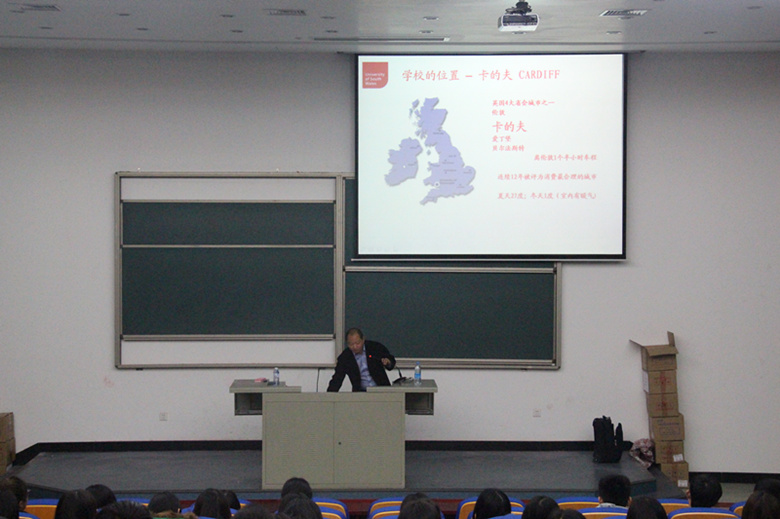 2010级国际经济与贸易专业毕业生傅雅凌同学开场,她图文并茂地与在场的同学们分享了参加英国南威尔士大学“3+1”留学项目以及考取英国名校卡迪夫大学研究生的亲身体会。接着,Sam老师为与会同学介绍了英国南威尔士大学的最新情况,包括英国南威尔士大学各校区的校园风光,包括教学楼、图书馆、文体活动中心、就业指导中心,医院等在内的学校硬件设施,学校周边配套设施,学生校内、校外住宿环境,可供学生享受的医疗福利等,并重点介绍了南威尔士大学的各项专业优势。随后,他向同学们解读南威尔士大学与国产成人视频
