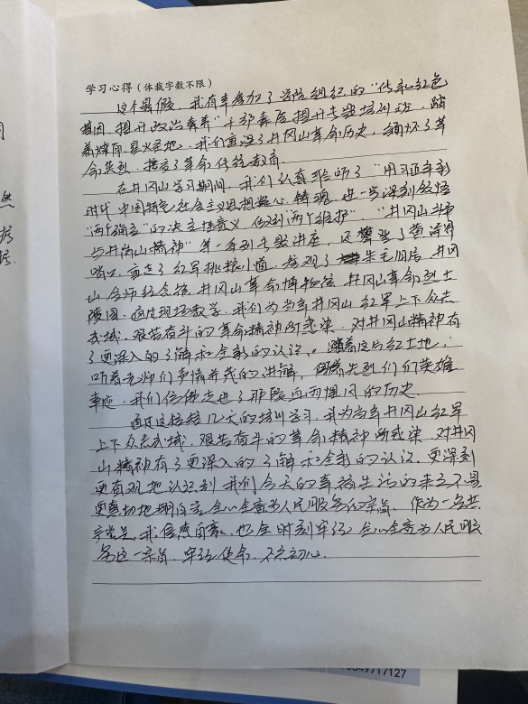 本次培训全体干部纷纷撰写培训心得体会,畅谈收获体会,交流思想感悟,增强传承井冈山精神的思想自觉和行动自觉,凝聚“为党育人、为国育才”智慧和力量。