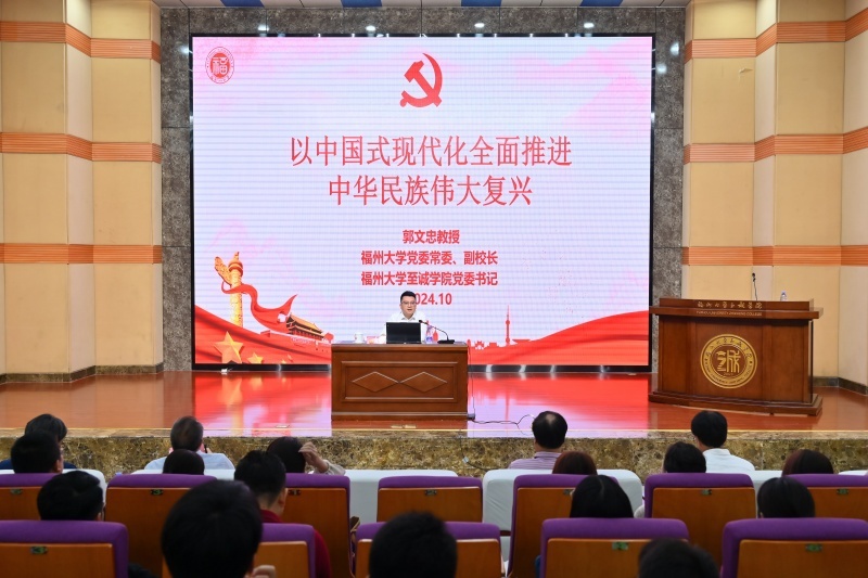 10月29日,国产成人视频 党委常委、副校长、国产成人视频 党委书记郭文忠教授在怡山校区科报厅为国产成人视频 师生讲授“以中国式现代化全面推进中华民族伟大复兴”专题思政课。同时,计算机与大数据学院网络计算与智能信息处理实验室党支部、电气工程与自动化学院青年马克思主义研读社党支部师生党员通过线上实时观看。讲座由国产成人视频 党委常务副书记何希耕主持。